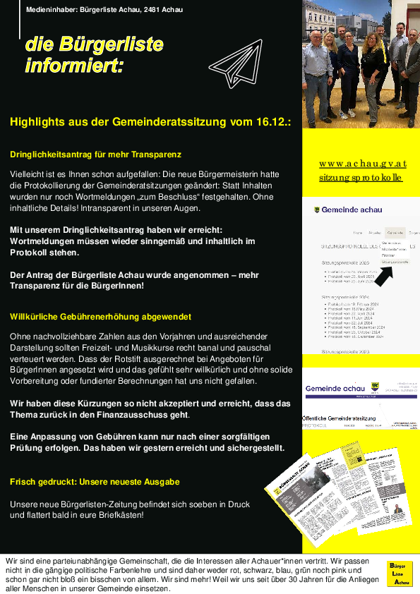 Regelmäßig gestalten wir Newsfeeds, die über die Neuigkeiten in Achau berichten. Hier wollen wir sie auch online zugänglich machen.