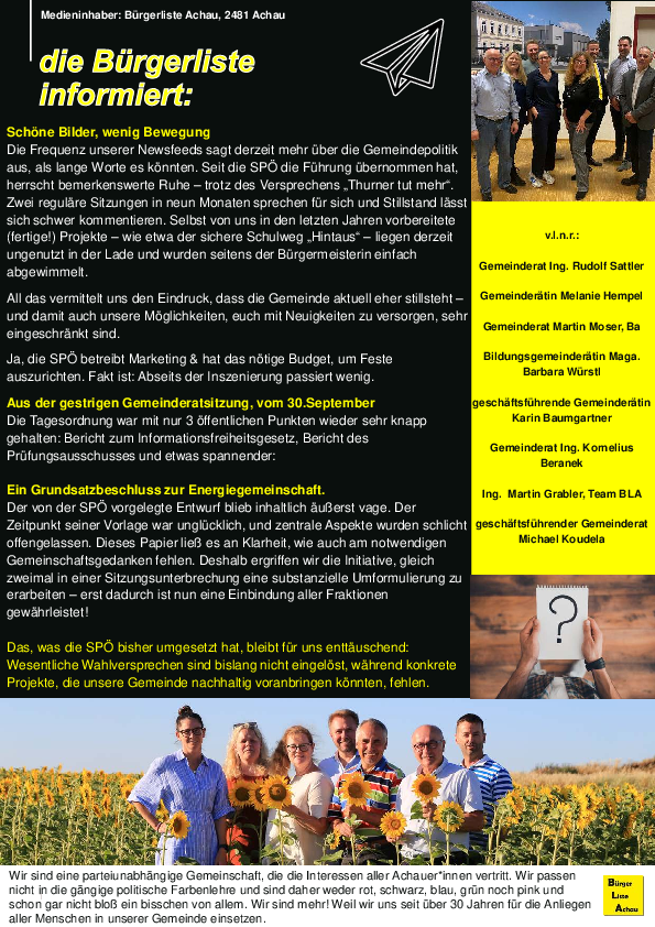 Regelmäßig gestalten wir Newsfeeds, die über die Neuigkeiten in Achau berichten. Hier wollen wir sie auch online zugänglich machen.
